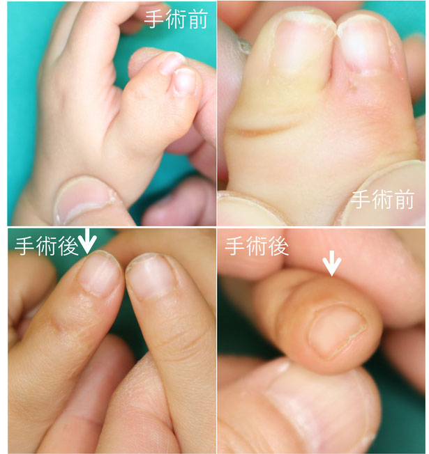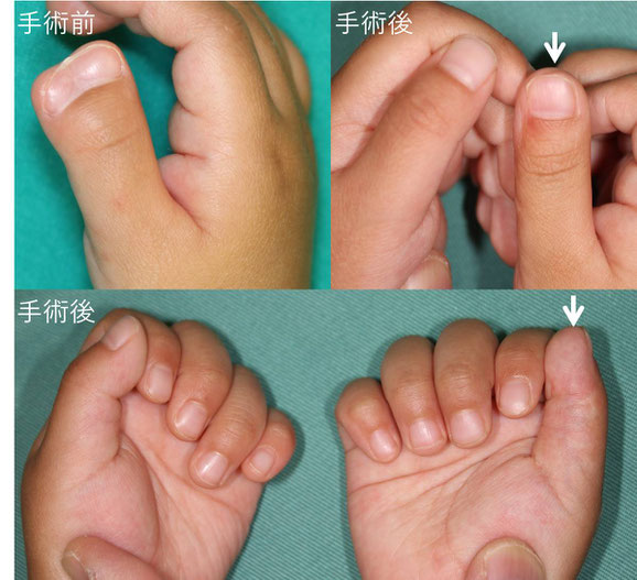 To allow for a better understanding of the surgery for polydactyly of the thumb, the preoperative and postoperative photos have been uploaded to this page. These photos are taken with permission from the patients’ families, through their kind wish to help future patients. Therefore, please refrain from copying or reproducing the photos on this website.